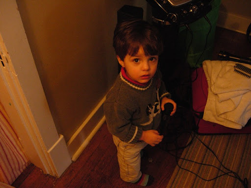 We slept in Joshua's room, while Joshua bedded down in his mom and dad's closet. In the morning we played with the karaoke machine in his room.